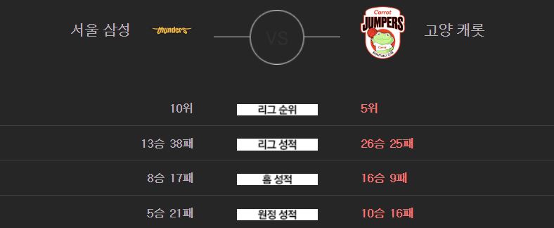 - 상대전적 평균 득점은 삼성썬더스 74.6 : 캐롯(?)점퍼스 81.8